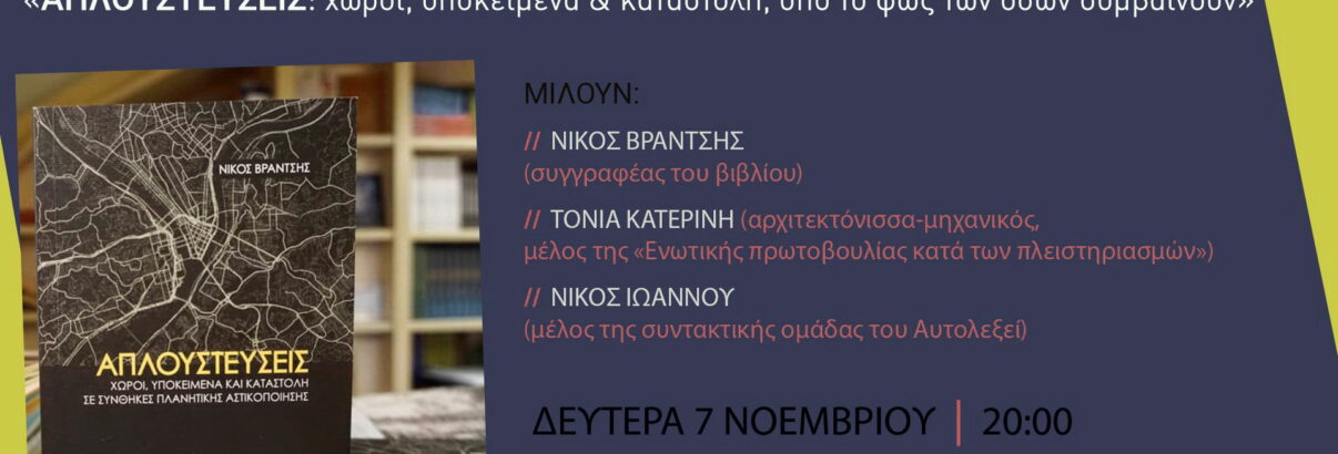 ΑΠΛΟΥΣΤΕΥΣΕΙΣ: χώροι, υποκείμενα & καταστολή, υπό το φως των όσων συμβαίνουν | Eκδήλωση-συζήτηση
