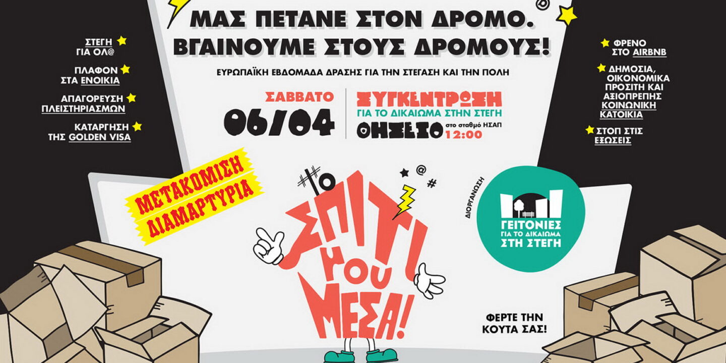 Οι Γειτονιές για το Δικαίωμα στη Στέγη καλούν στη Συγκέντρωση-Πορεία για το Δικαίωμα στη Στέγη…Περισσότερα…