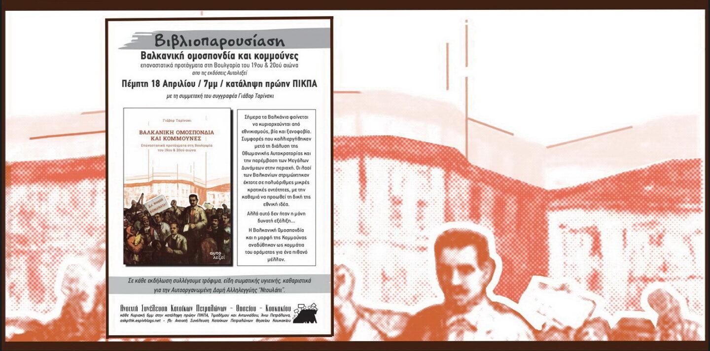 Βιβλιοπαρουσίαση «Βαλκανική ομοσπονδία και κομμούνες: επαναστατικά προτάγματα στη Βουλγαρία του 19ου & 20ού αιώνα», από…Περισσότερα…