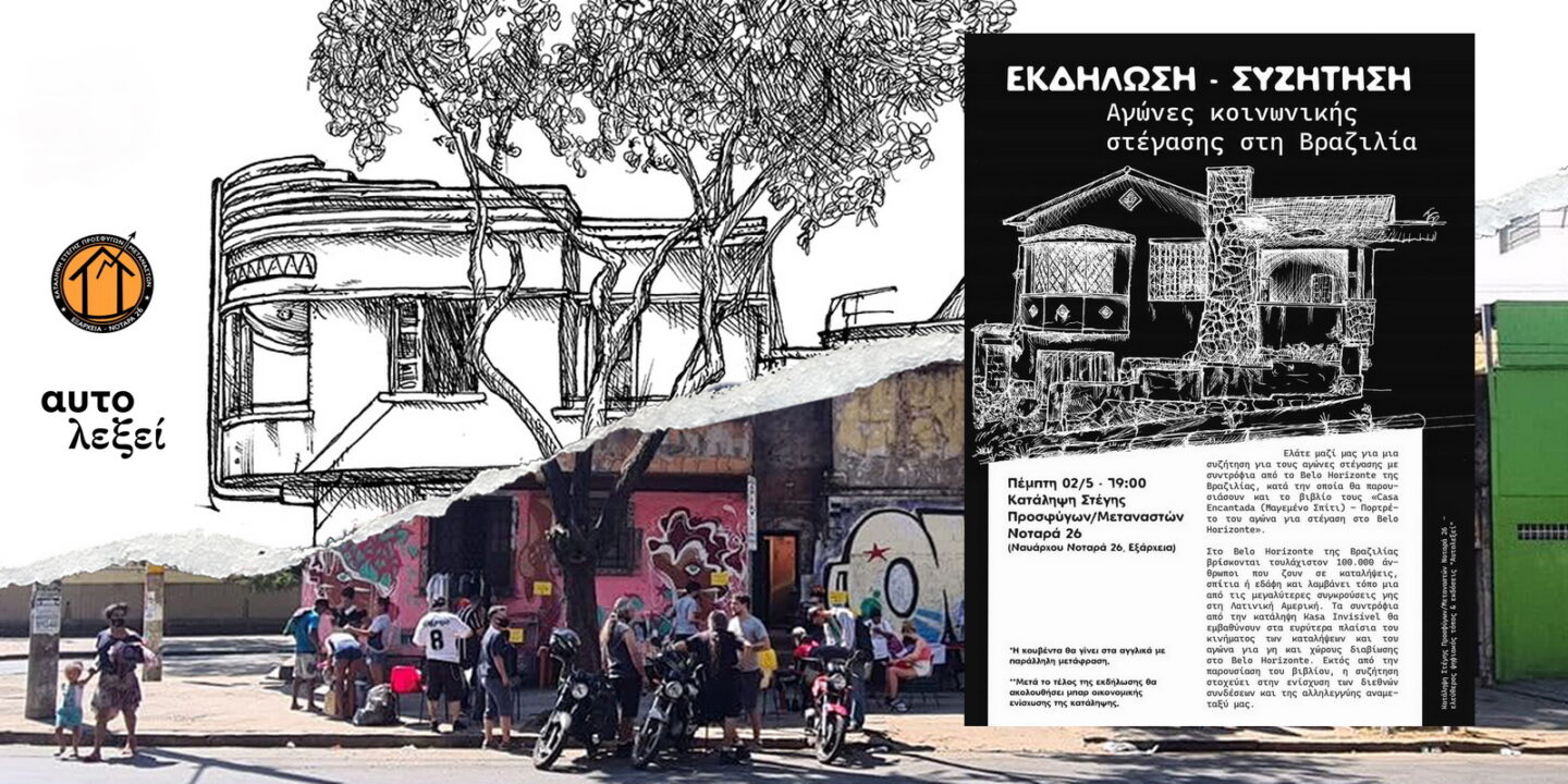 Εκδήλωση – συζήτηση: Αγώνες κοινωνικής στέγασης στη Βραζιλία. Την εκδήλωση συνδιοργανώνουμε από κοινού η Κατάληψη…Περισσότερα…