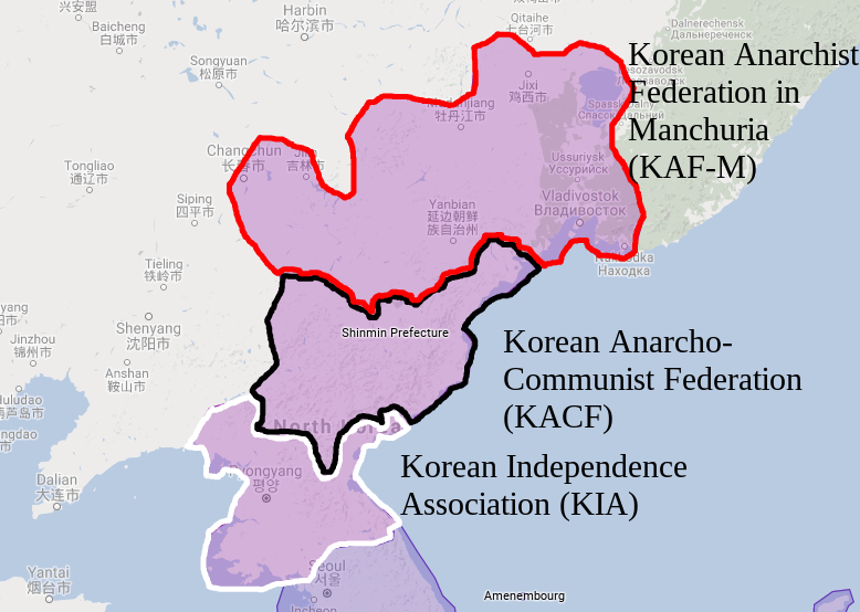 Για αιώνες, η Μαντζουρία αποτέλεσε καταφύγιο για μετανάστες και εξόριστους από την Κορέα, τη Ρωσία, την Κίνα, την Ιαπωνία, το Βιετνάμ και τις Φιλιππίνες. Το 1910, η ιαπωνική κυβέρνηση ξεκίνησε την προσάρτηση της Κορέας. Πολλοί Κορεάτες κατέφυγαν στη Μαντζουρία, ανάμεσα στους οποίους και ένας μεγάλος αριθμός αναρχικών που ήταν πολύ δραστήριοι στις κοινότητες των εξορίστων. Μέχρι τα μέσα της δεκαετίας του 1920, οι Κορεάτες εξόριστοι δημιούργησαν τρεις αυτόνομες αυτοδιοικούμενες περιοχές – τις περιοχές Jeongen, Chanren και Shinmin – όλες ελεύθερες τόσο από την ιαπωνική παρουσία, όσο και από τους Κινέζους πολέμαρχους και τους τοπικούς φεουδάρχες της Μαντζουρίας.
