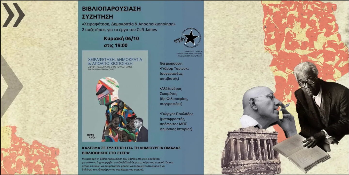 Βιβλιοπαρουσίαση – Συζήτηση την Κυριακή 06/10 στις 19:00 στο στέγ* στο Γαλάτσι Παρουσίαση-συζήτηση του βιβλίου,…Περισσότερα…