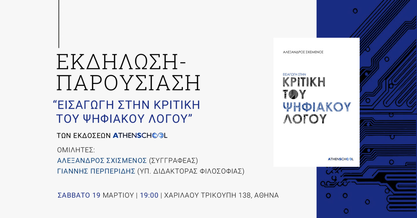 Ακολουθεί το βίντεο της εκδήλωσης και της συζήτησης που ακολούθησε με τίτλο «Η ηλεκτρονική εκδοχή…Περισσότερα…