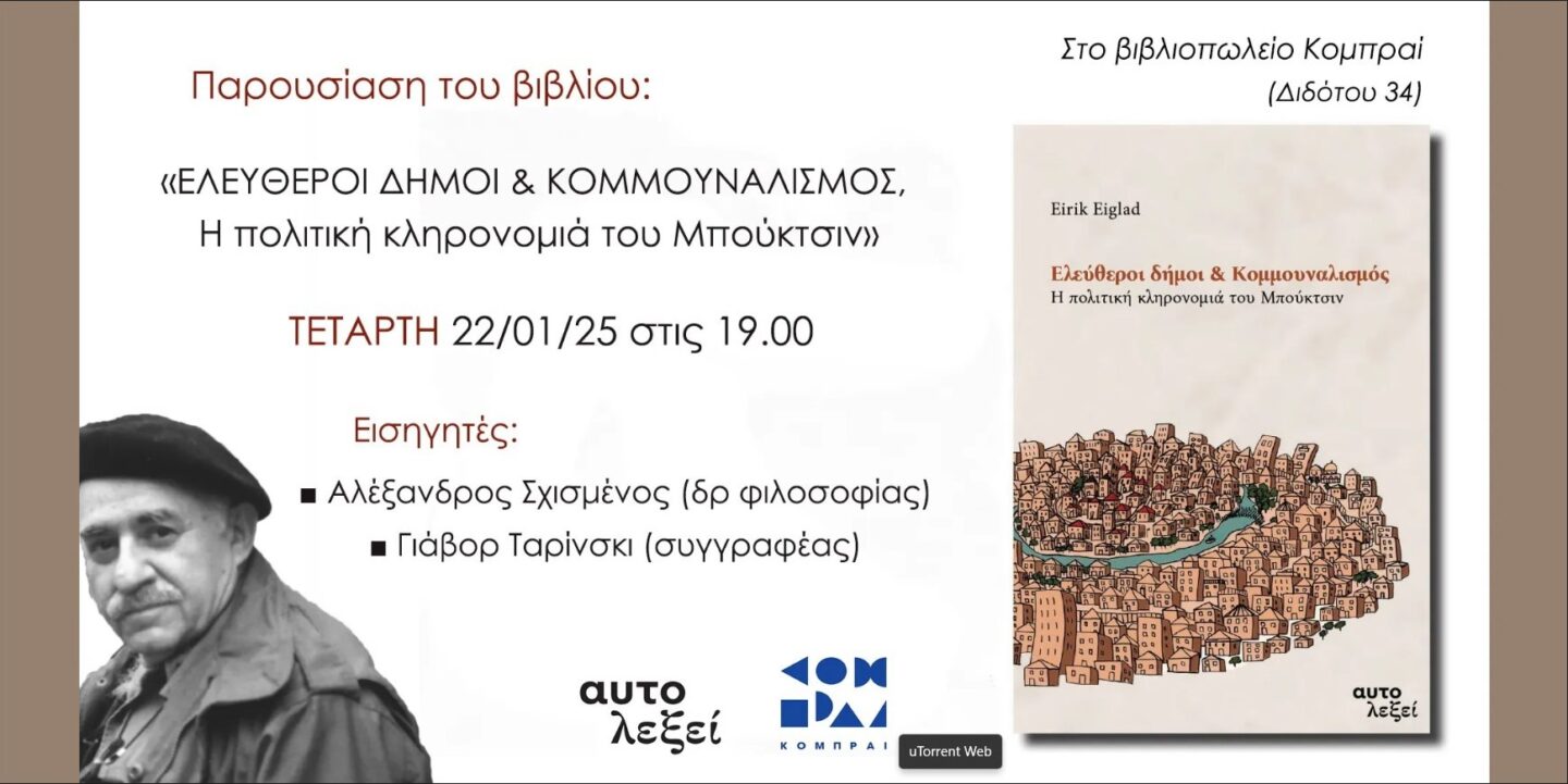 Κυκλοφορεί από τo Αυτολεξεί! Eirik Eiglad, ΕΛΕΥΘΕΡΟΙ ΔΗΜΟΙ & ΚΟΜΜΟΥΝΑΛΙΣΜΟΣ. Η πολιτική κληρονομιά του Μπούκτσιν,…Περισσότερα…